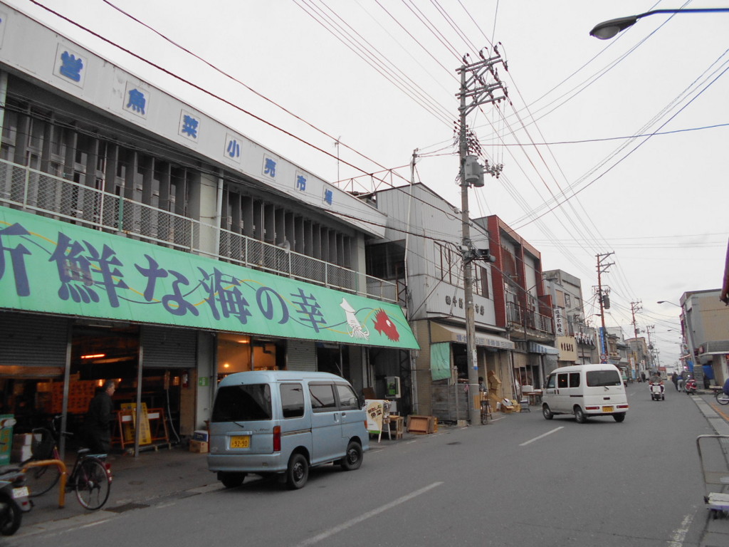 八戸市街のビジネスホテルを7時出発、陸奥湊駅前の朝市に向かいました。